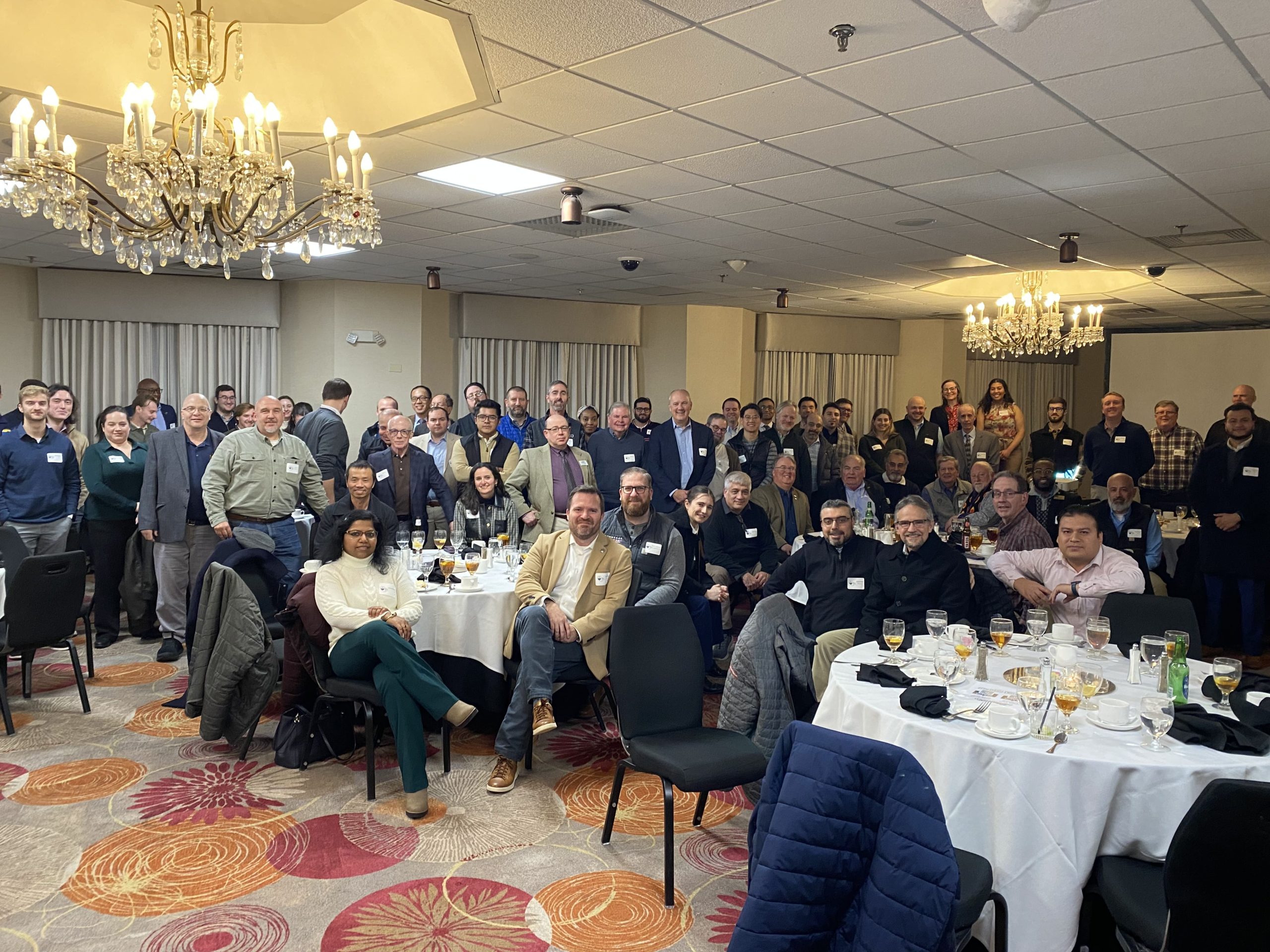 On Tuesday, January 20, 2026, over 70 DVGI members and friends DVGI welcomed the new year at our January Dinner Meeting. The meeting featured a presentation by Dr. George R. Koerner, PhD, PE, CQA, F.ASCE., Director of the Geosynthetic Institute (GSI), on the Lifetime Predictions of Exposed HP-TRM and Geogrids Used on MSE Structures.