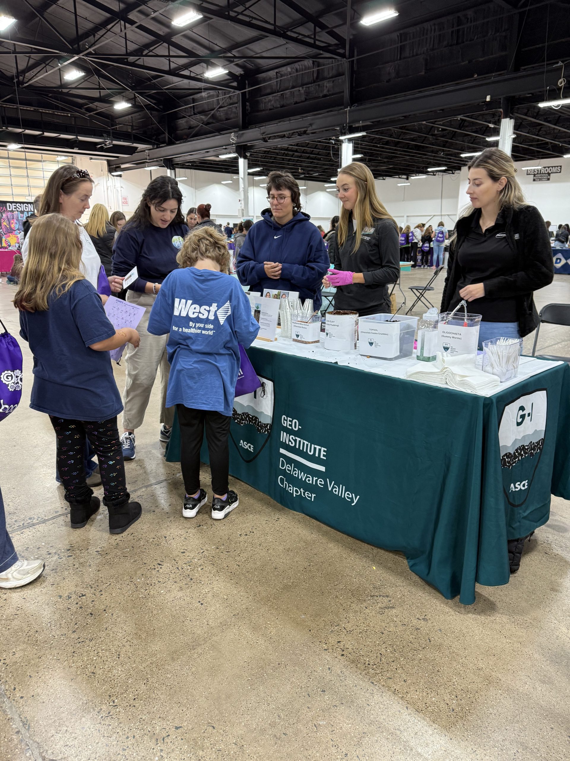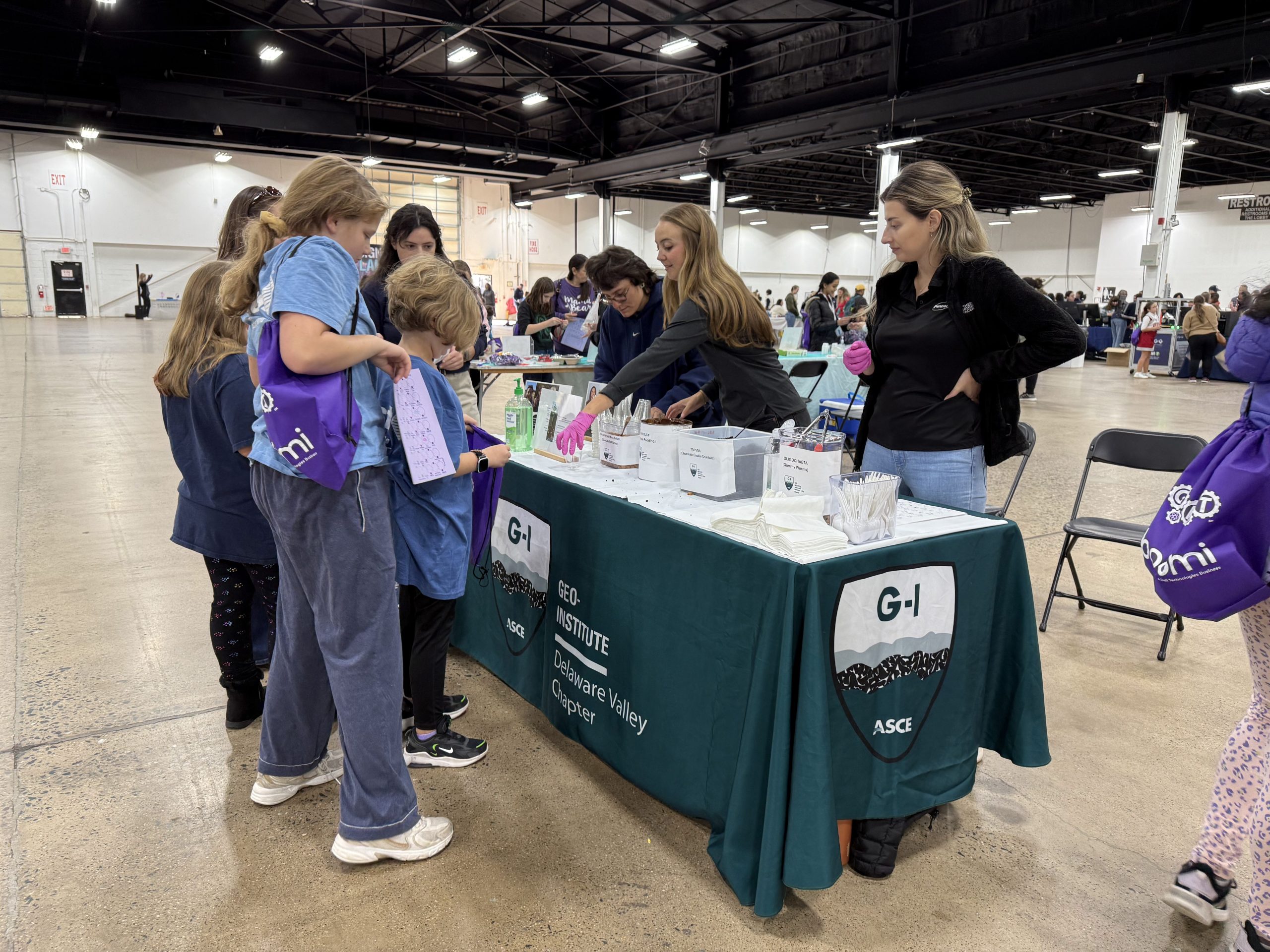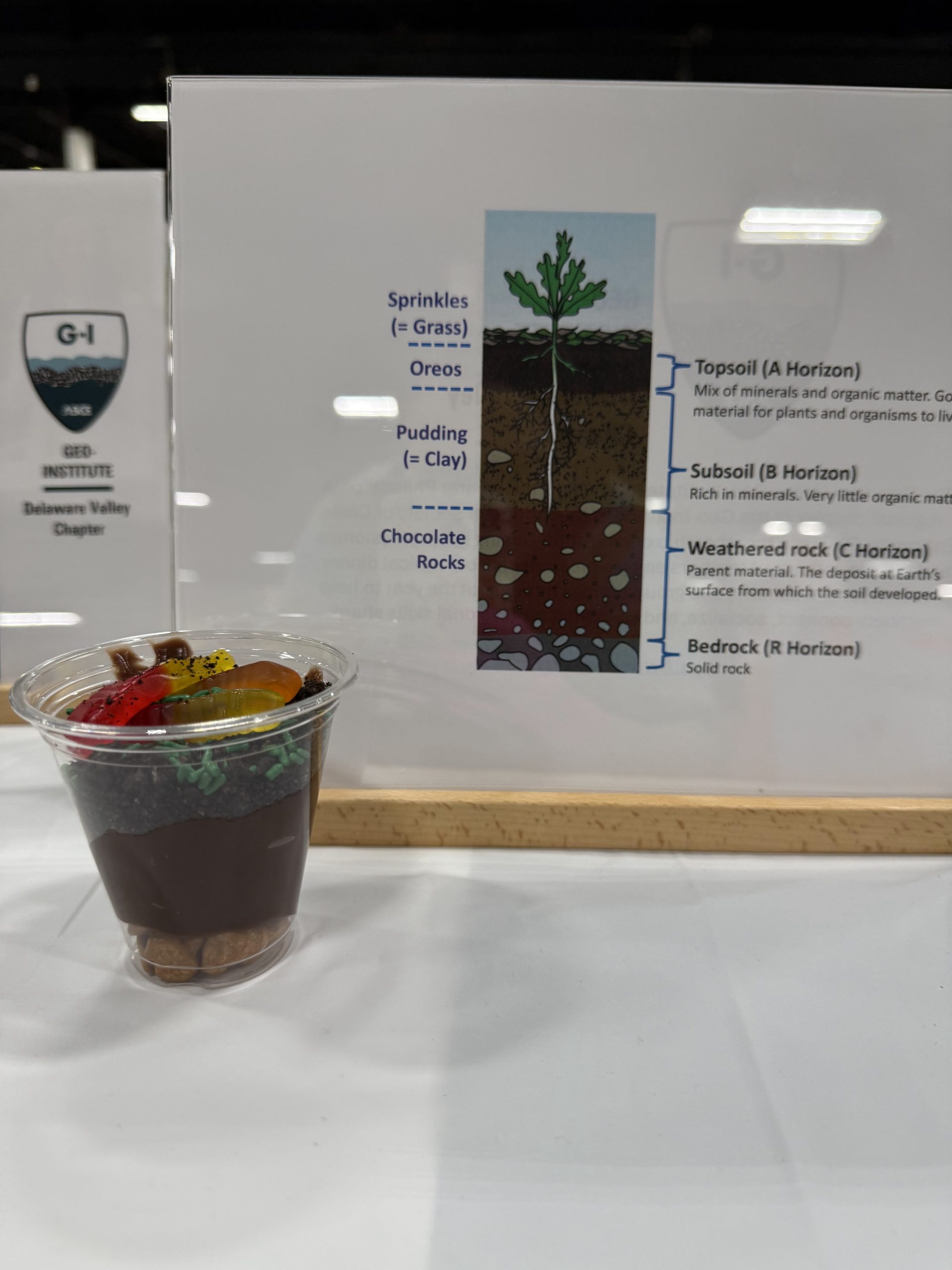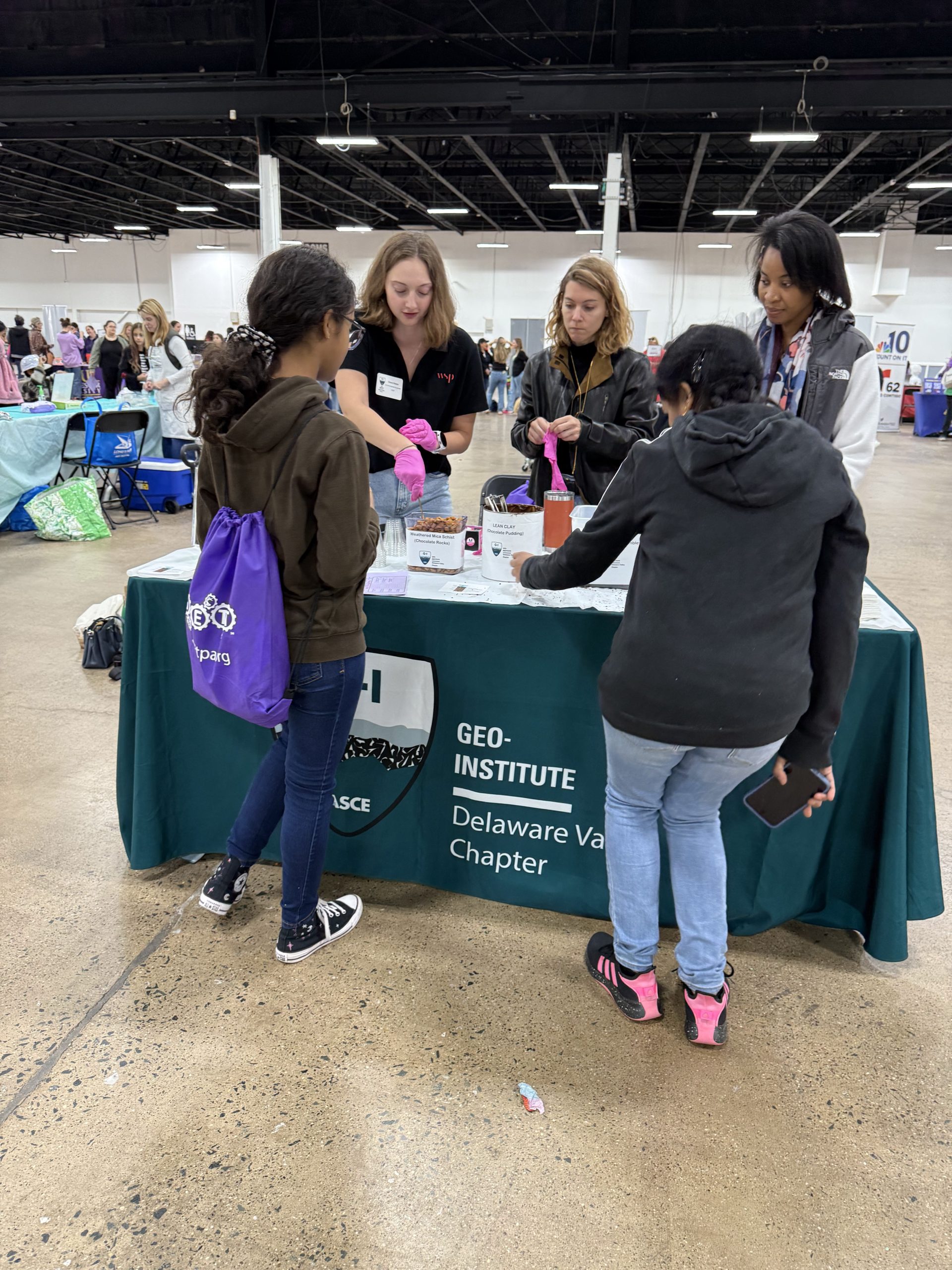 On Saturday, November 1st, members of the DVGI volunteered their time at the Girls Engineering Tomorrow’s Technology Expo at the Philadelphia Expo Center in Oaks, PA. DVGI has participated in the Girls Exploring Tomorrow’s Technology (GETT) Expo every year that it has been held since 2016. GETT is an initiative of the Innovative Technology Action Group (ITAG), a program under the Chester County Economic Development Council. It is hosted by a K-12 school in the greater Delaware Valley. The GETT Expo is an annual day-long event for girls in grades 5 through 10 and their parents to learn about career opportunities in a broad scope of STEM related industries. The day is filled with exciting, enlightening, and experiential workshops led by successful women in STEM fields. This year, the DVGI estimates about 250 young girls participated in DVGI’s activity. This year DVGI prepared a Soil Layers activity for girls to create edible soil profiles in a cup!