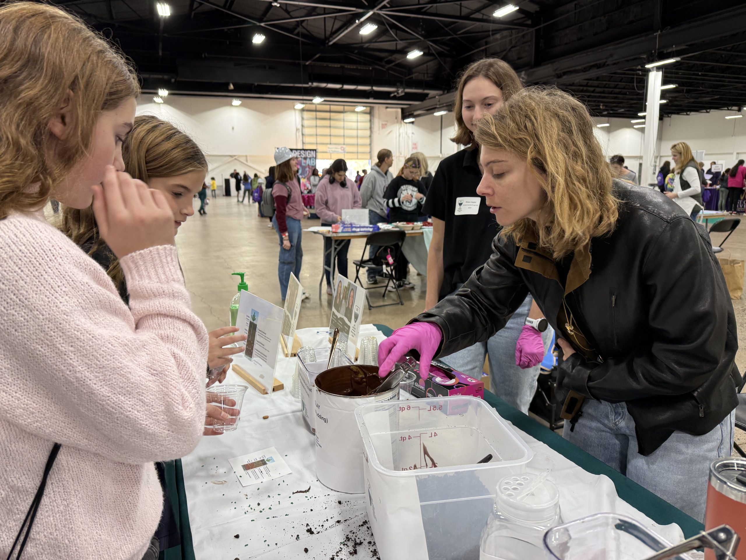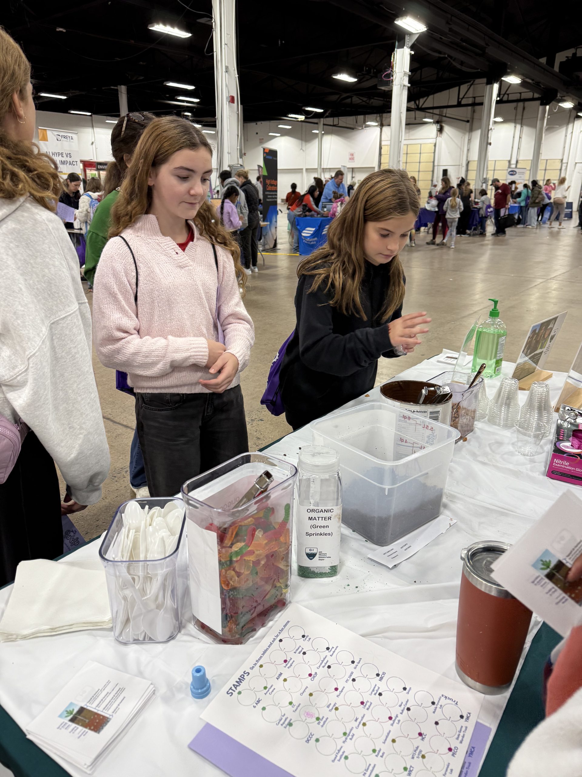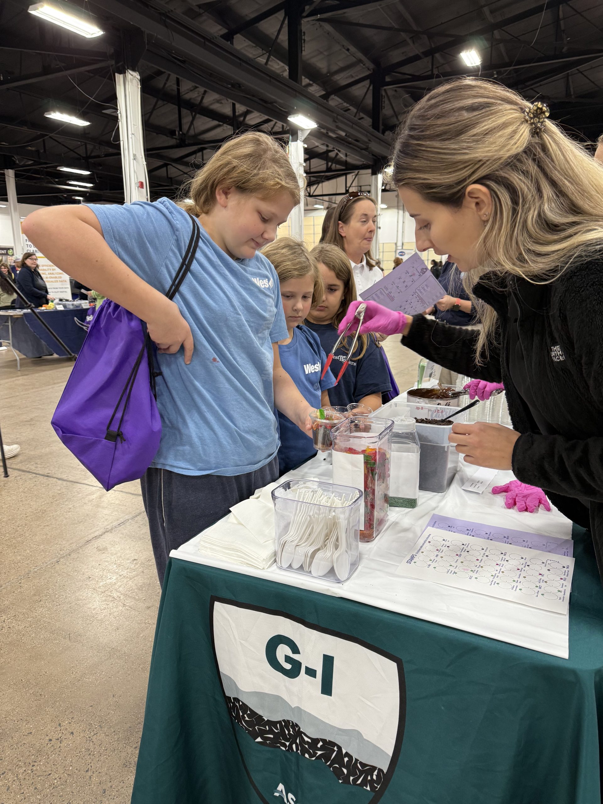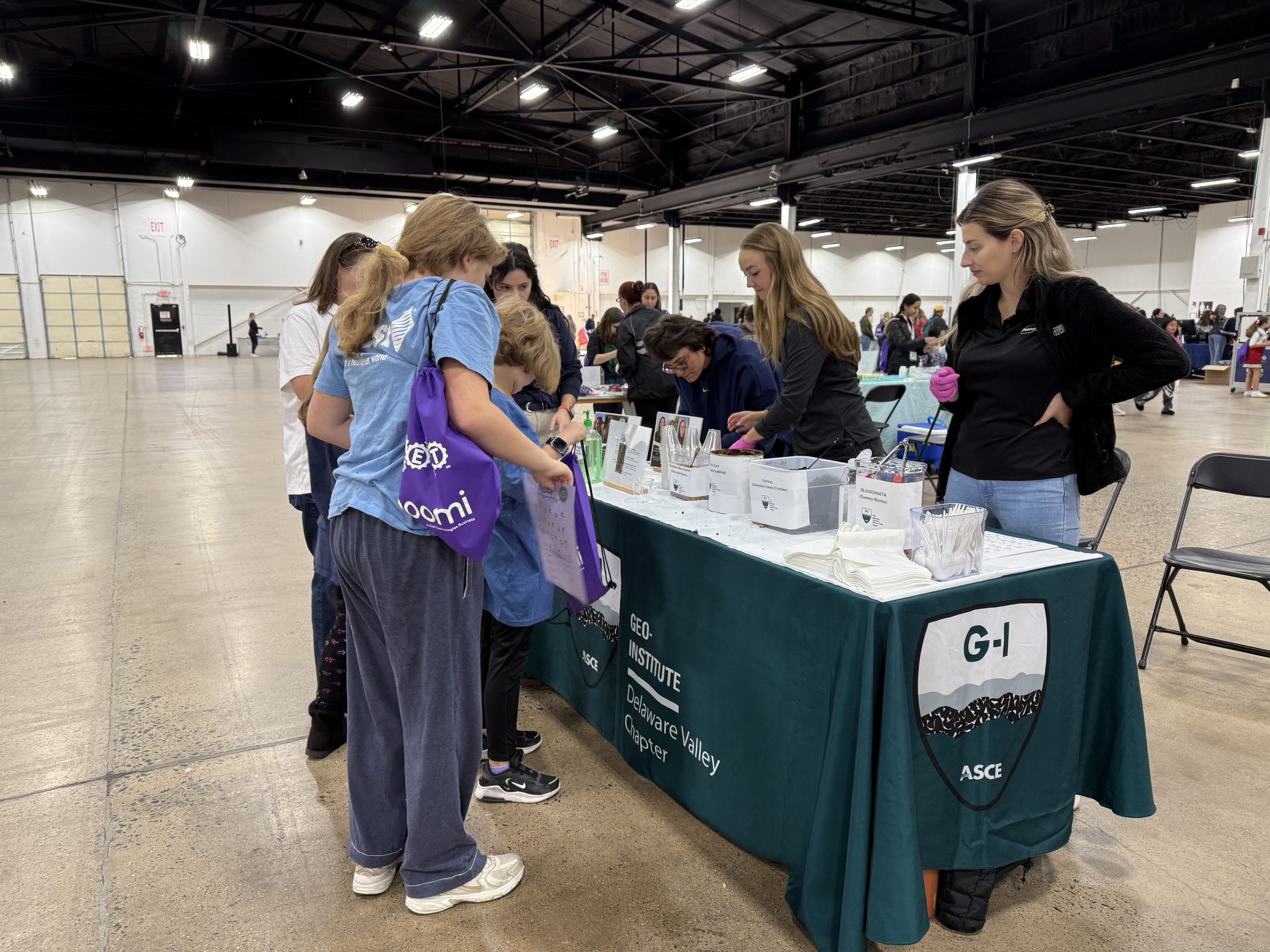 On Saturday, November 1st, members of the DVGI volunteered their time at the Girls Engineering Tomorrow’s Technology Expo at the Philadelphia Expo Center in Oaks, PA. DVGI has participated in the Girls Exploring Tomorrow’s Technology (GETT) Expo every year that it has been held since 2016. GETT is an initiative of the Innovative Technology Action Group (ITAG), a program under the Chester County Economic Development Council. It is hosted by a K-12 school in the greater Delaware Valley. The GETT Expo is an annual day-long event for girls in grades 5 through 10 and their parents to learn about career opportunities in a broad scope of STEM related industries. The day is filled with exciting, enlightening, and experiential workshops led by successful women in STEM fields. This year, the DVGI estimates about 250 young girls participated in DVGI’s activity. This year DVGI prepared a Soil Layers activity for girls to create edible soil profiles in a cup!