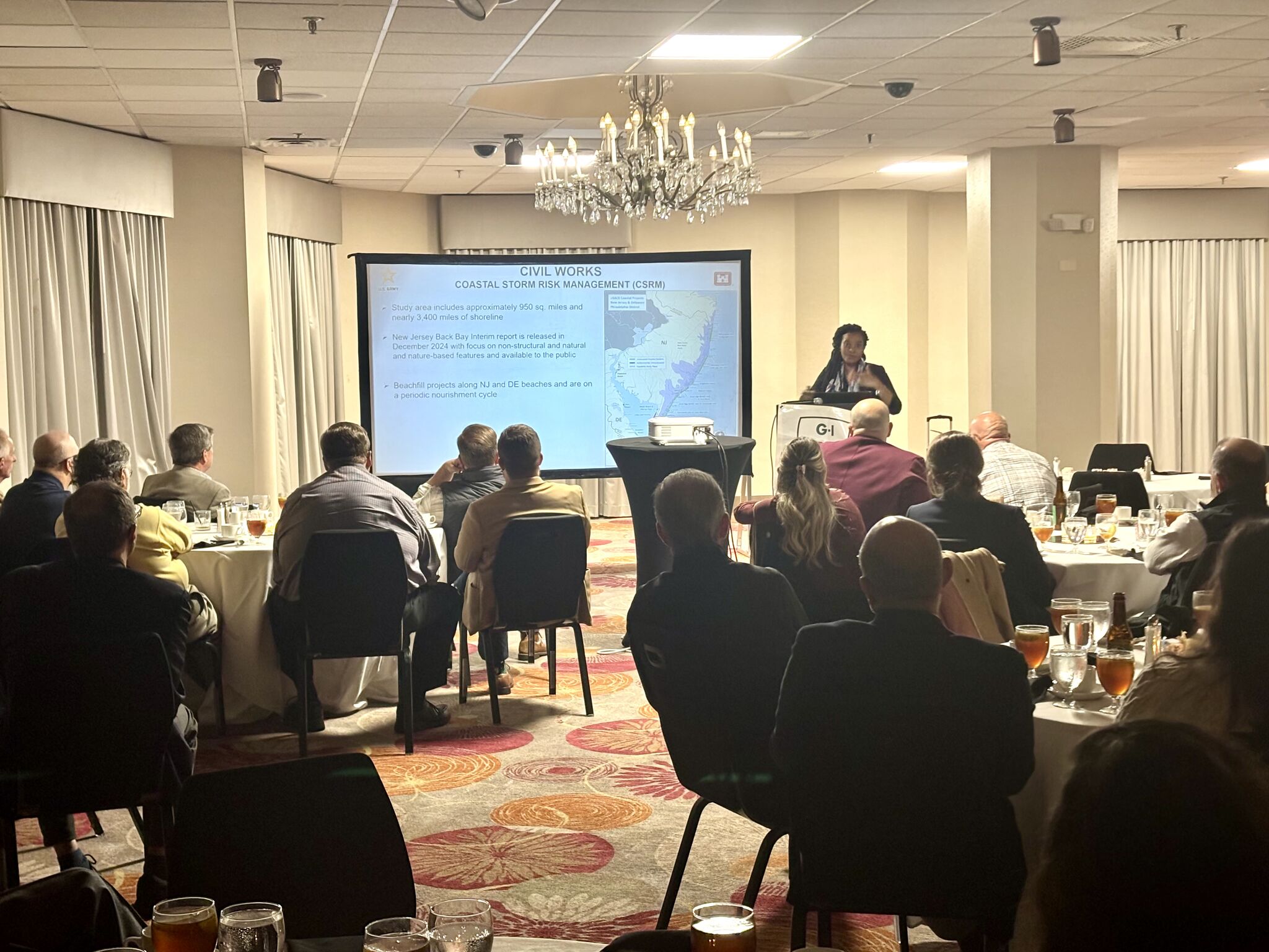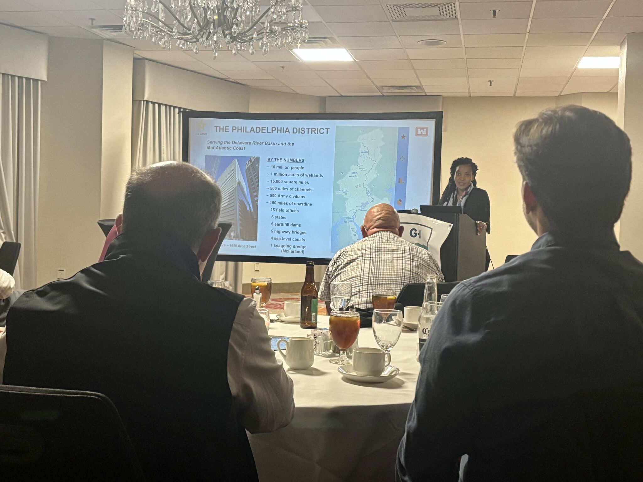 The U.S. Army Corps of Engineers Philadelphia District received funding from the Infrastructure Investment and Jobs Act for maintenance repairs, including design and construction of jetty restoration, repair of a failed bulkhead on the interior north shore, and beachfill nourishment to reduce erosion. Melinda’s presentation highlighted the importance of coastal resilience and the impact USACE’s projects have in protecting our coastlines and communities. Thank you for sharing your project with us!